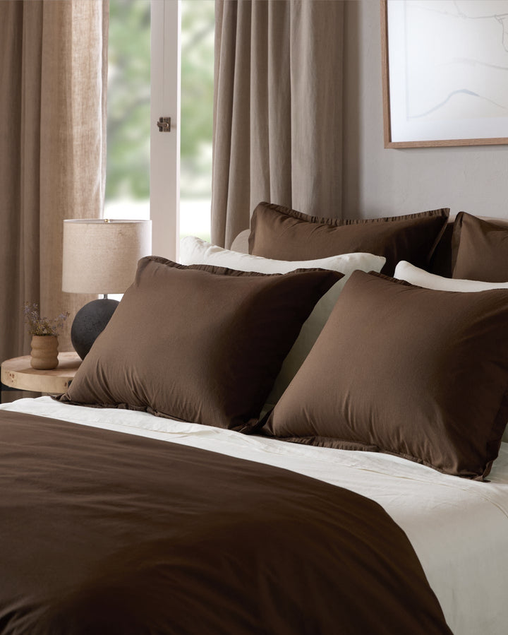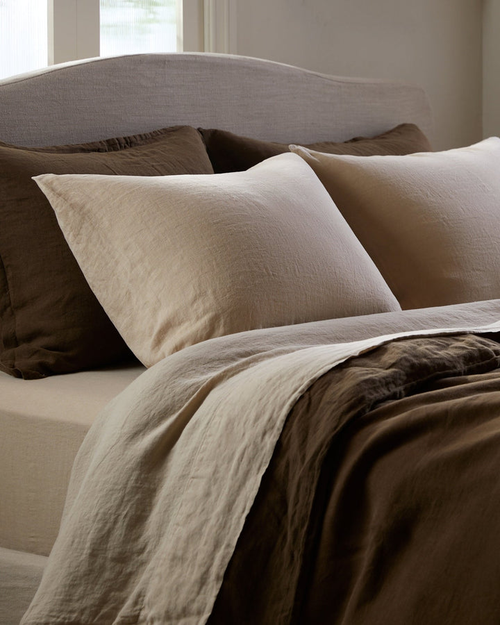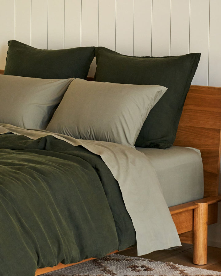 Our sheet sets—complete with a fitted sheet, top sheet, and two pillowcases—offer breathable softness and effortless polish. The perfect base layer, whether styled simply or layered with intention.
