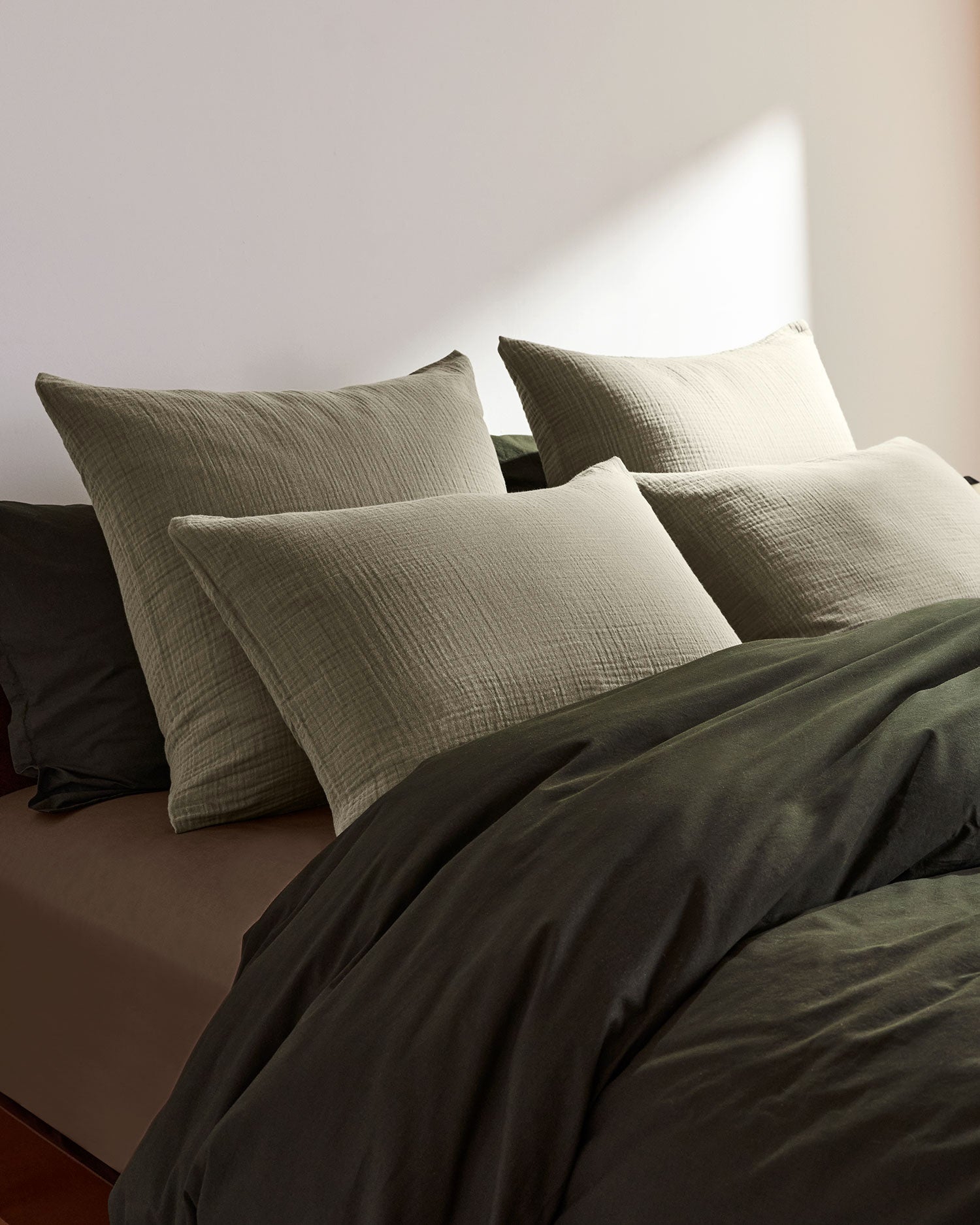 This light and fluffy fabric is made from multiple layers of 100% organic Turkish cotton, garment washed for exceptional softness and yarn dyed for subtle coloration that will not fade. Please note: Due to the soft, delicate nature of gauze fabric – this product is more prone to snagging with rough wear. If you have pets or prefer a more durable fabric, try our Linen Euro Sham or Percale Euro Sham.