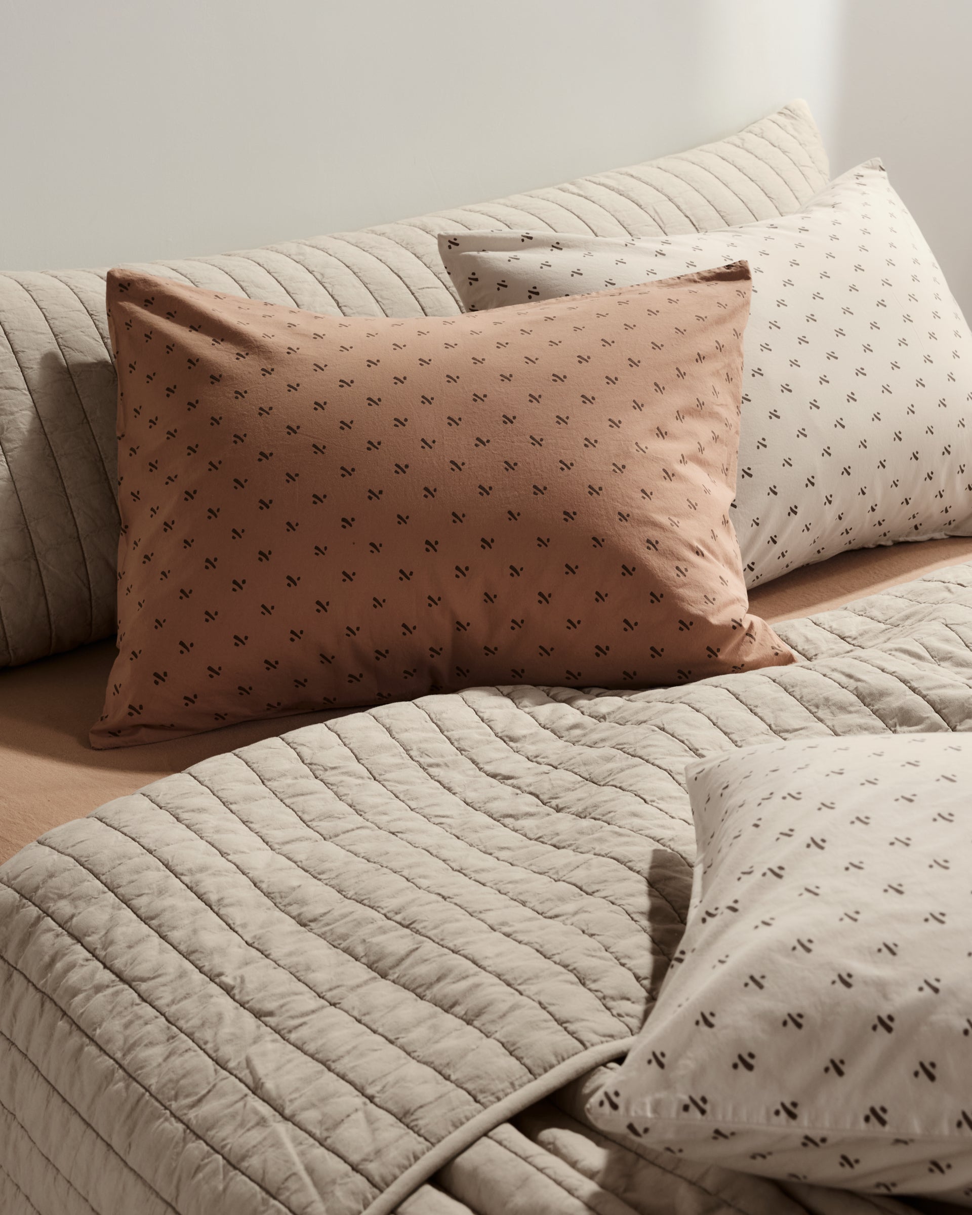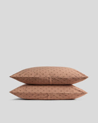 Rest easy with these soft, natural pillowcases in our signature back envelope closure. Inspired by a vintage fabric find, this percale pillowcase set is first printed, then overdyed, softening the color and allover motif for a relaxed, lived-in feel. Crisp yet comfortable, with an ease that helps the bed feel collected — not redecorated.