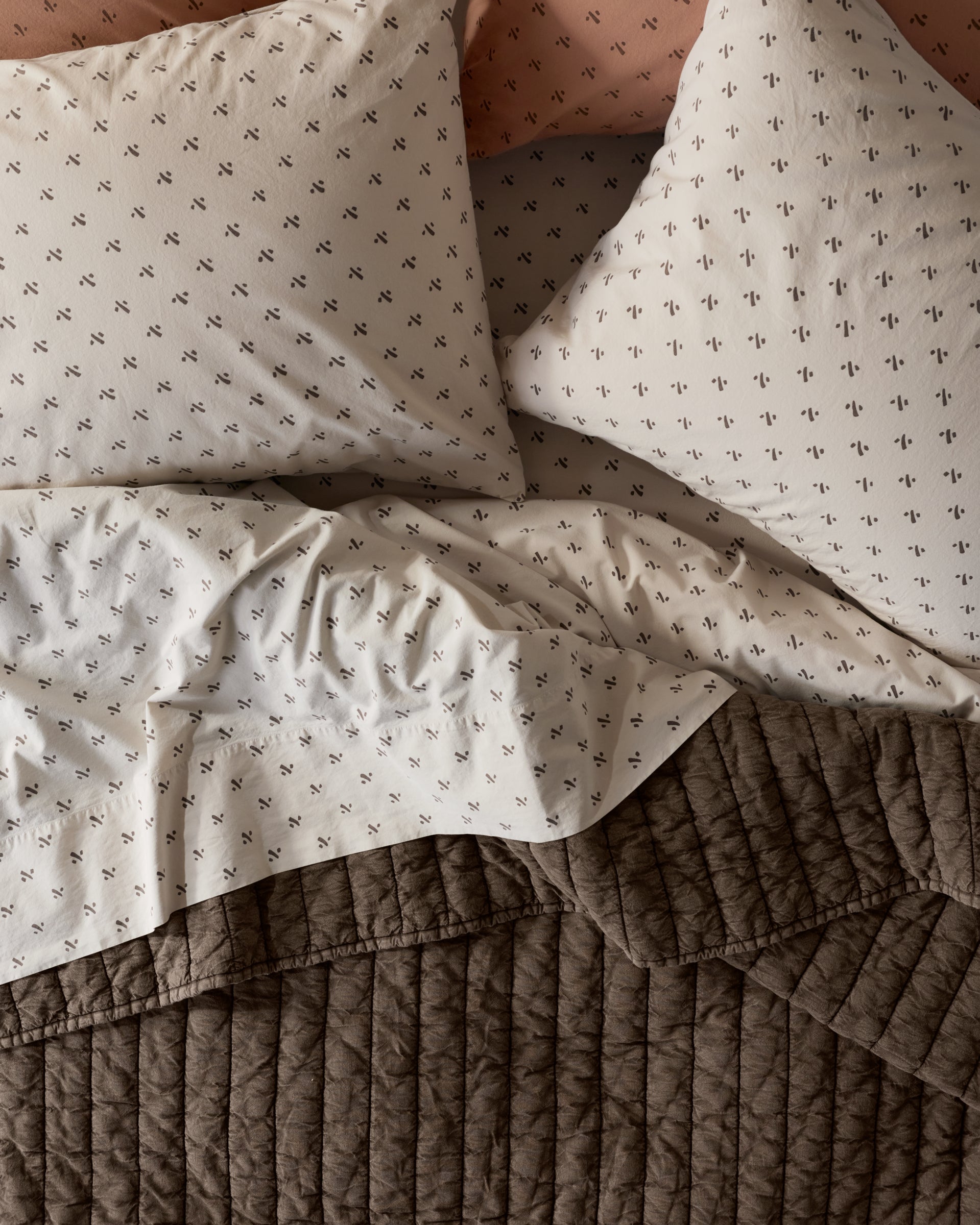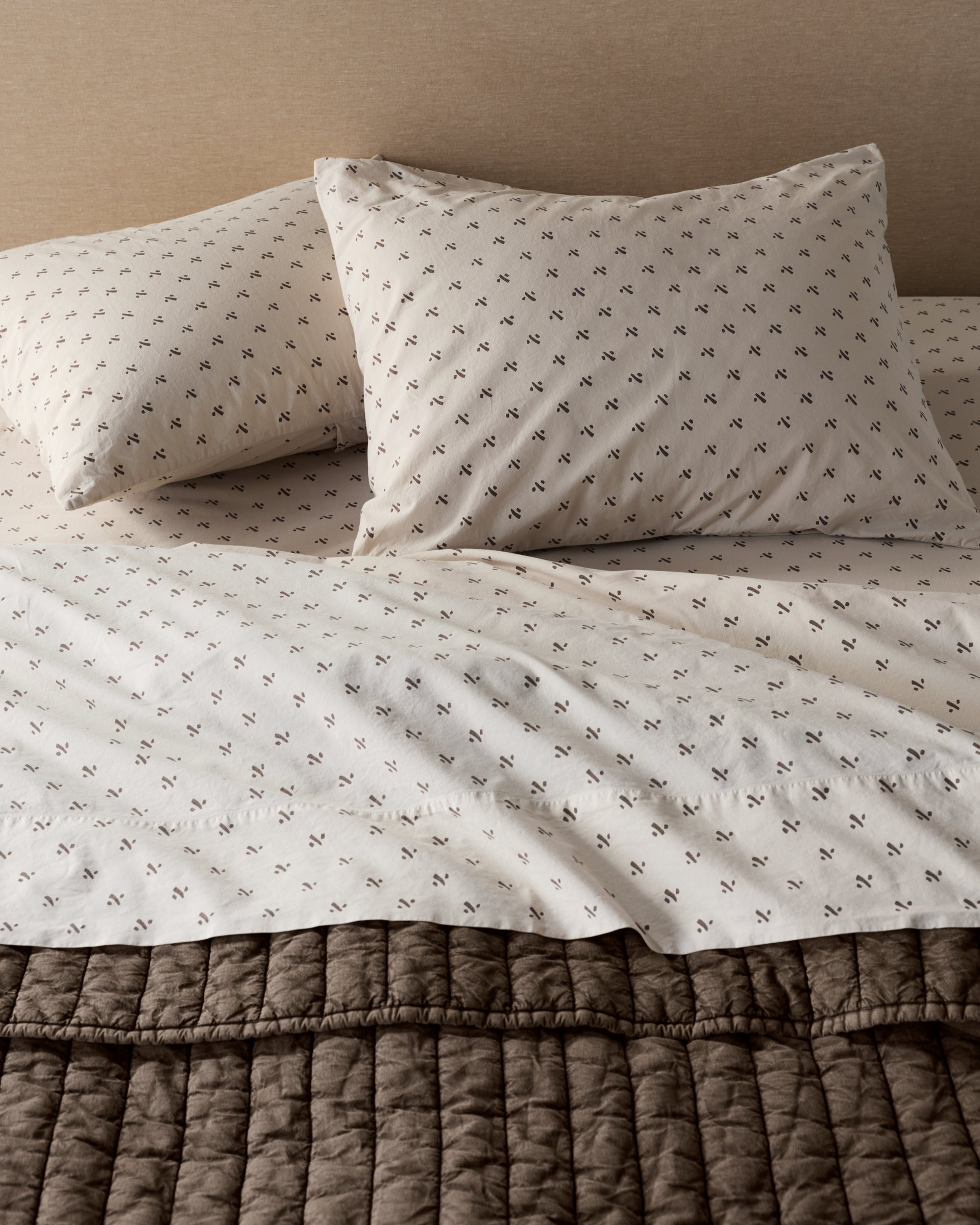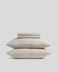 The start to making your perfect bed. Inspired by a vintage fabric find, this percale sheet set is first printed, then overdyed, softening the color and allover motif for a relaxed, lived-in feel. Crisp yet comfortable, with an ease that helps the bed feel collected — not redecorated.