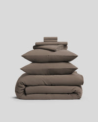 Everything you need to make your perfect bed. Double-cooling, temperature-regulating, and soft from the start. Crafted in Portugal with our beloved European flax linen, and naturally softened by the smooth, silky touch of tencel. This fabric brings the best of both worlds: breathable comfort, cooling performance, lasting durability, and an effortless, wrinkle-resistant drape. Tencel wicks away moisture, while linen lends its relaxed, lived-in look — together striking the perfect balance of cool, calm, and casually elegant.