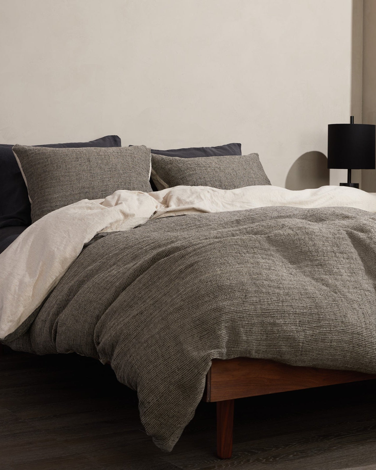 Where texture becomes design. Woven from black and natural cotton-linen yarns in a honeycomb pattern, this duvet cover and sham set plays beautifully with light and shadow. The dimensional weave adds quiet depth, while the breathable blend keeps you comfortable year-round. A timeless piece for elevated, effortless living.