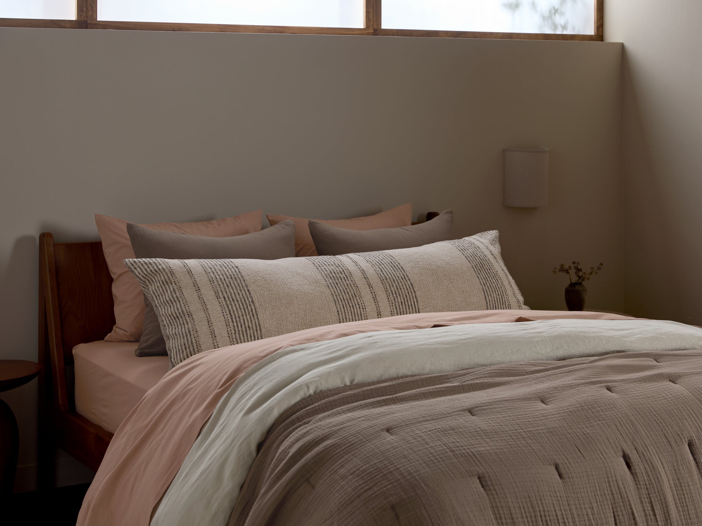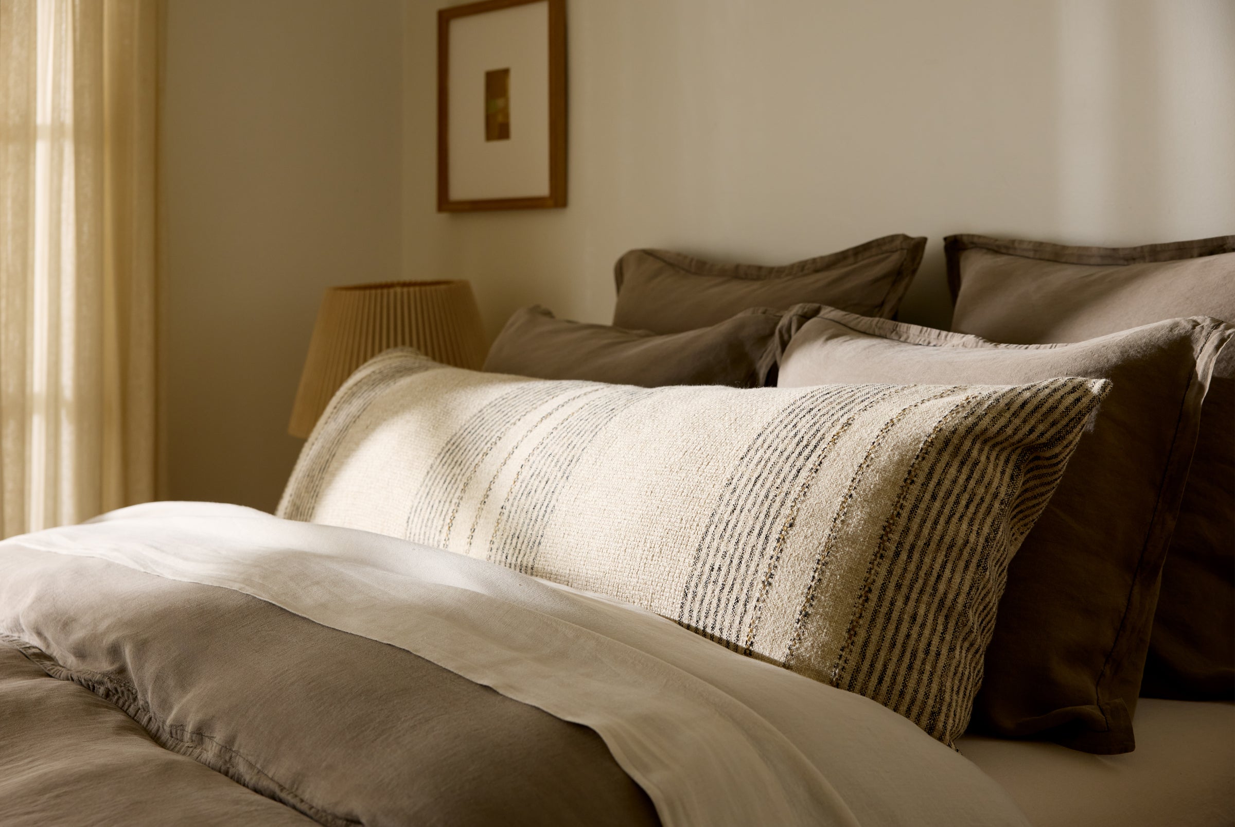 Inspired by New Mexico’s high desert, this superbly soft pillow cover features minimalist textured stripes. Made from a velvety blend of cotton and linen in neutral hues – it’s an effortless one-and-done styling piece for any bed.