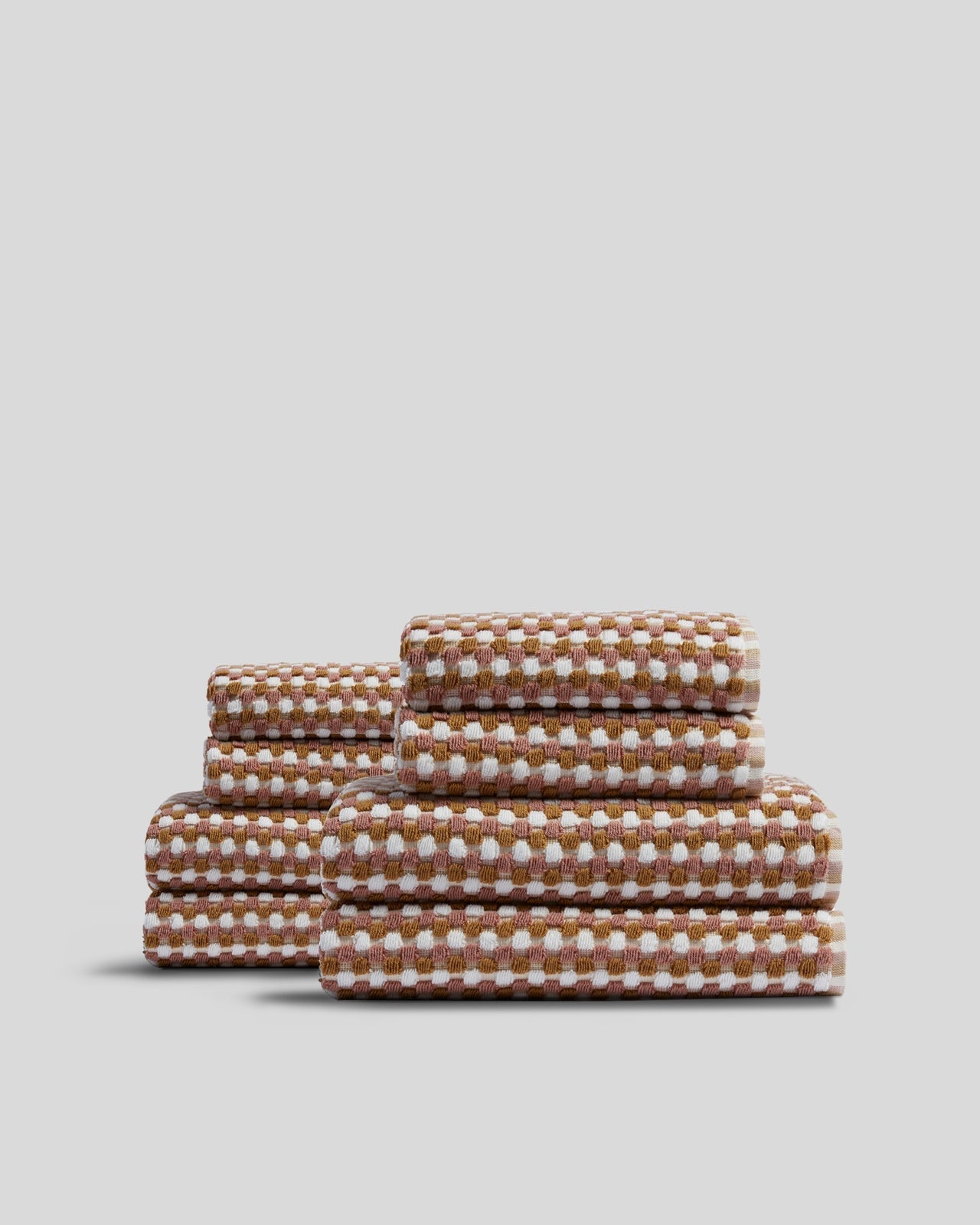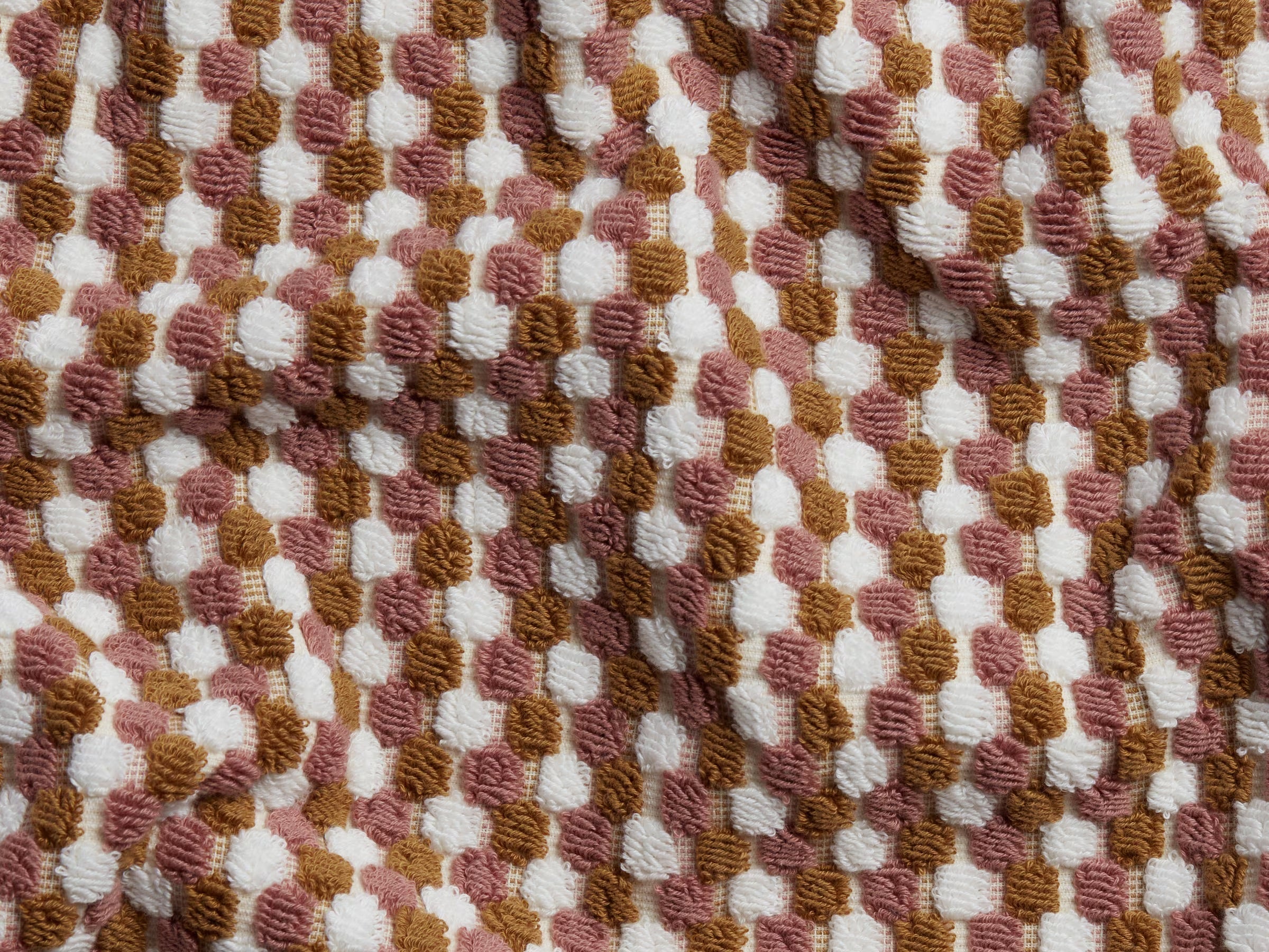 The jacquard weave is made from 100% yarn-dyed organic cotton, giving it a naturally luxurious handfeel. The depth of the geometric pattern gives the towel a more absorbent quality – while the intricacy of the dobby circles adds a weightiness that results in a slightly longer dry time.