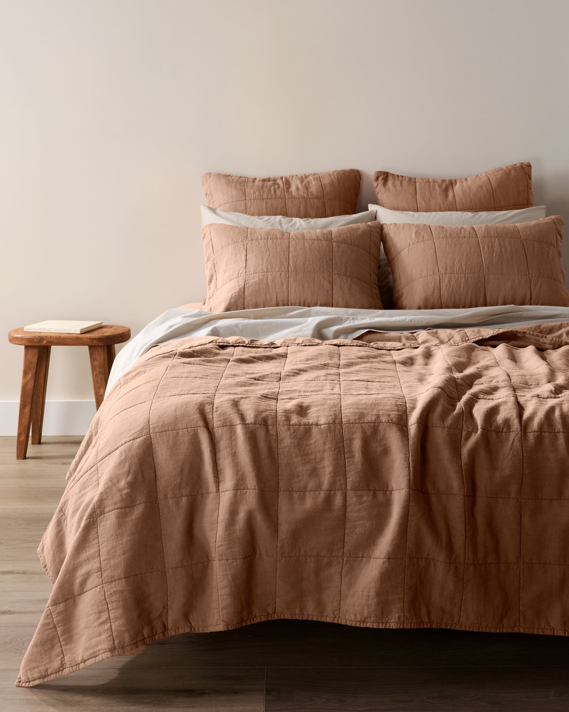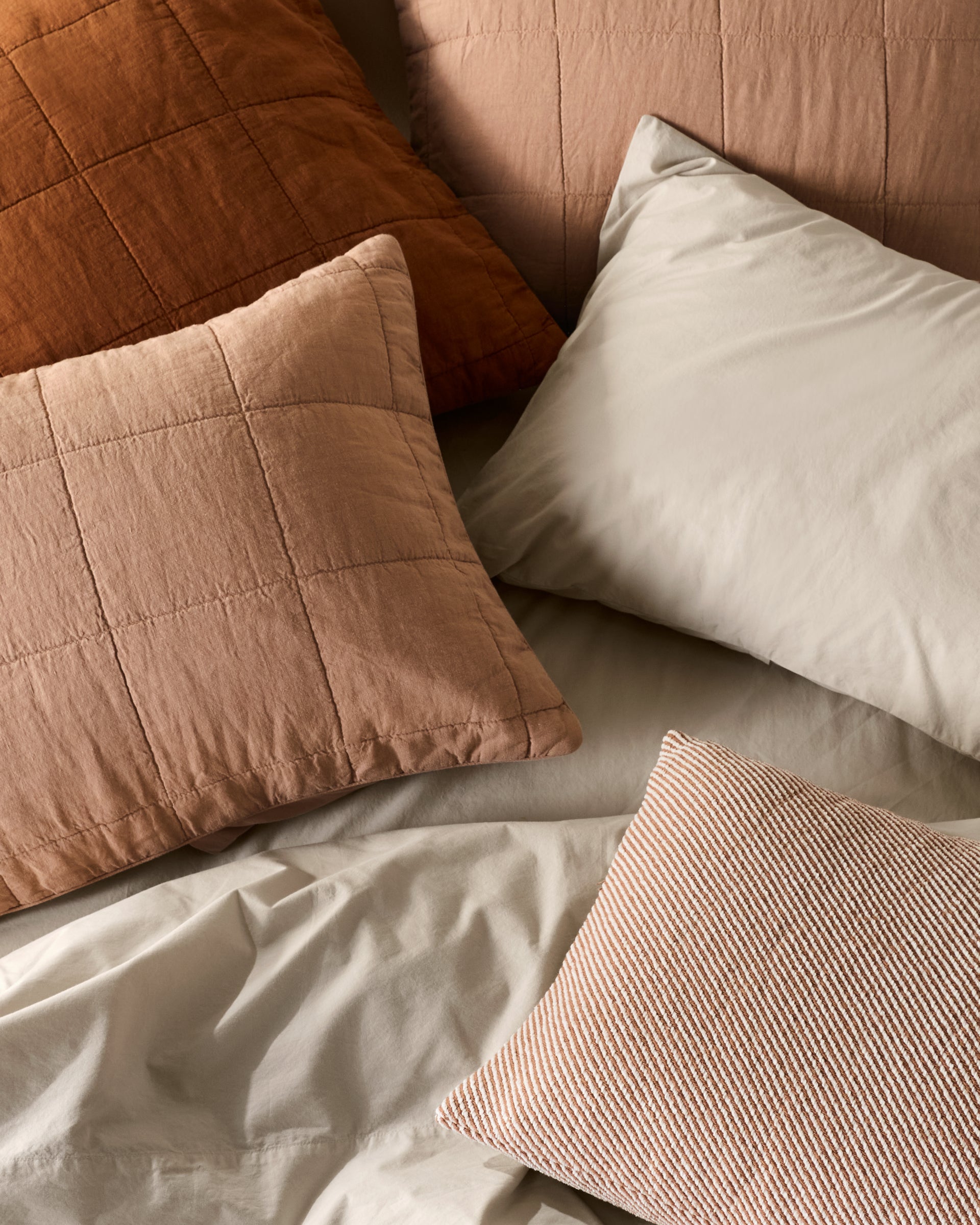 A set of two decorative quilted shams for a minimalist finishing touch.