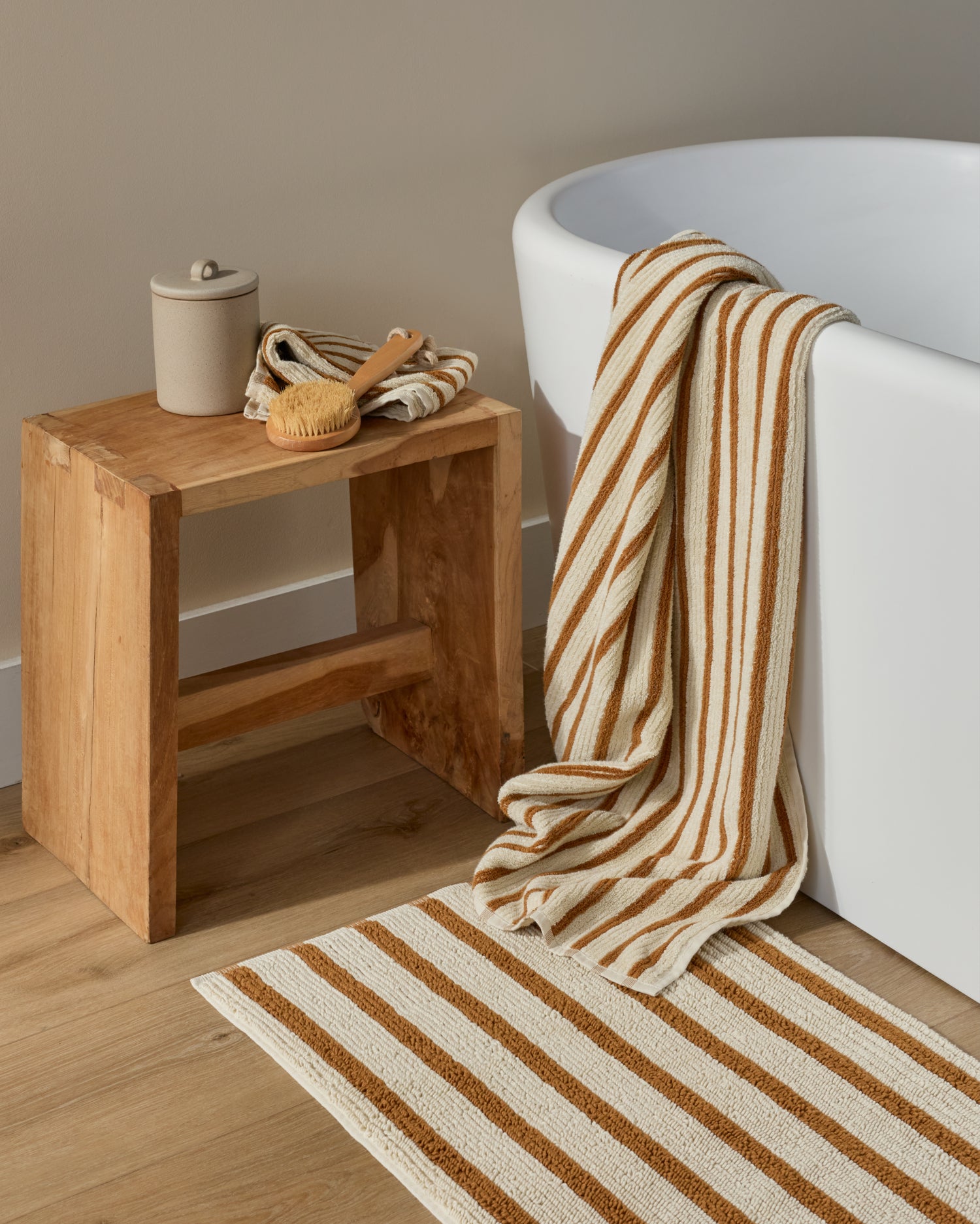 We love a seaside resort moment – with striped bath linens crafted from pure organic cotton.